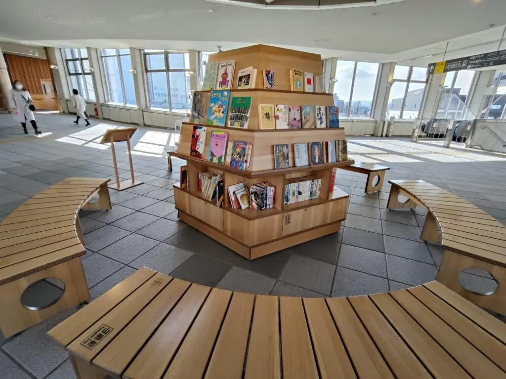こちらの「本のひろば」は、霞城セントラル側から駅に向かう際など、多くの人が日常的に通り過ぎる場所に位置しています。